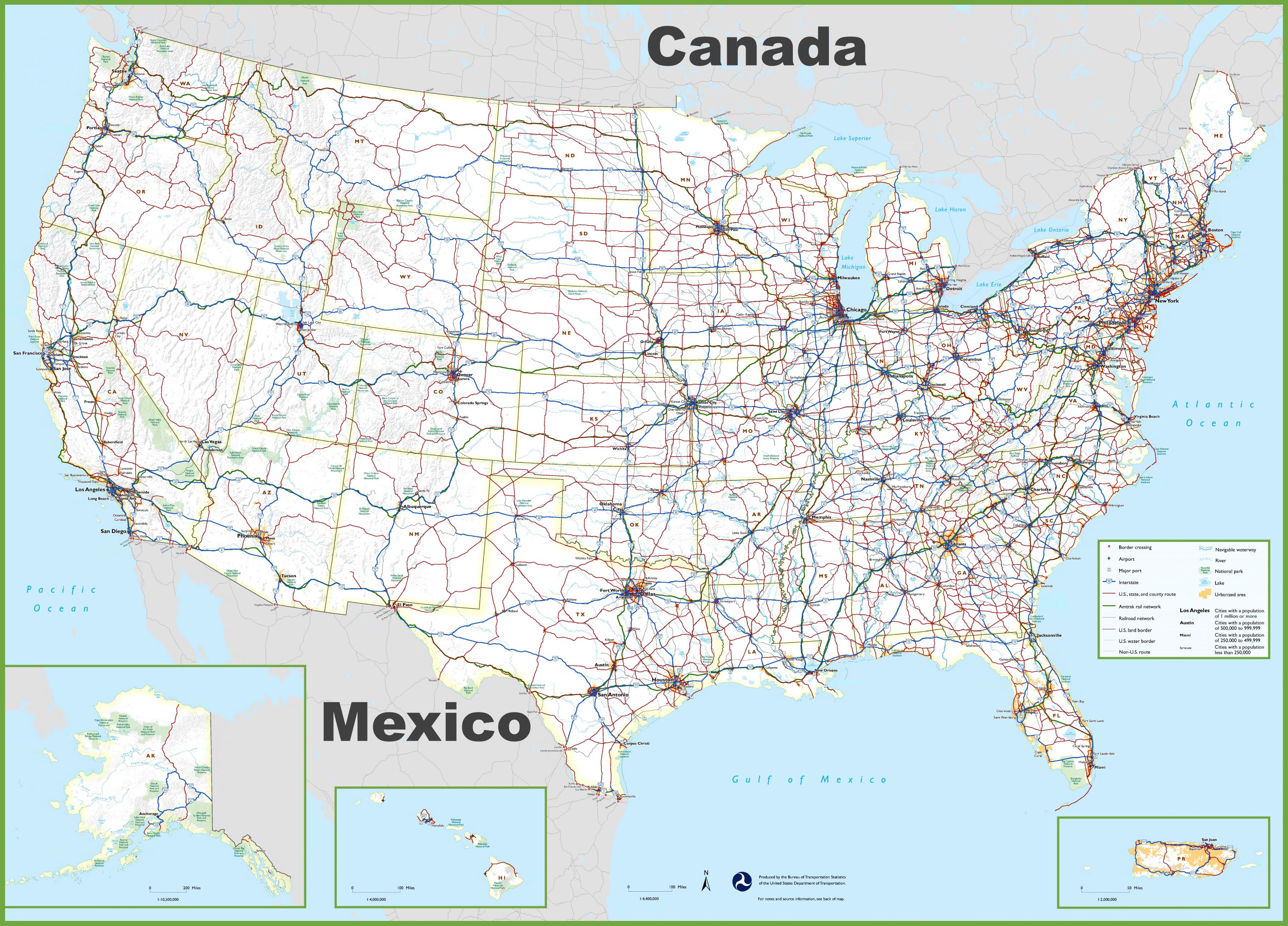 Estados unidos transportes mapa. Estados UNIDOS transportes mapa (Norte de estados unidos de América) para imprimir. Estados UNIDOS transportes mapa (Norte de estados unidos de América) para descargar.